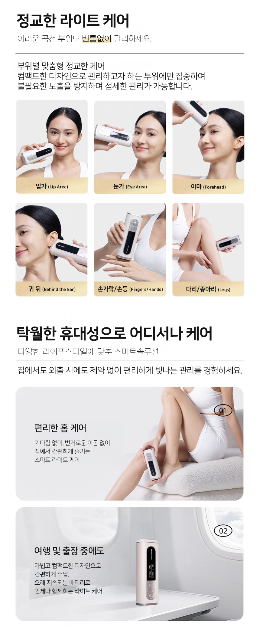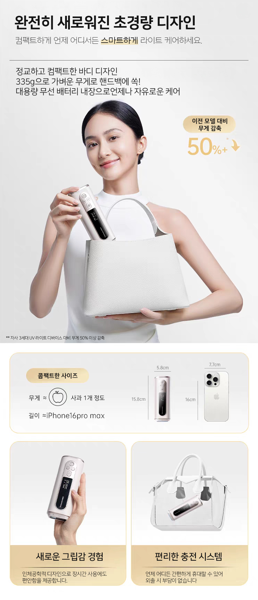 이 제품은 535g의 초경량 디자인으로 휴대가 간편하며, 언제 어디서든 원하는 시간대에 피부 케어가 가능합니다.